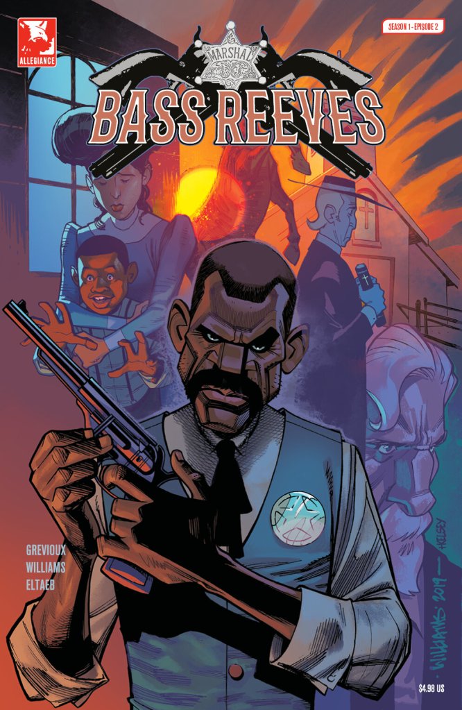 The creative team of writer Kevin Grevioux, artist David Williams, and letterer Eric Weathers return, alongside new colorist Gabriel Eltaeb, to bring us this second issue in this new series about the greatest Western lawman that most of you have never heard of. Taking place a few years after Bass accepted the job of U.S. Marshall, as was shown in the first issue, we see that his reputation is already reaching legendary status as he’s shown apprehending criminals in Louisiana, Oklahoma, and in a Native American village, where he goes undercover to catch some White bootleggers.