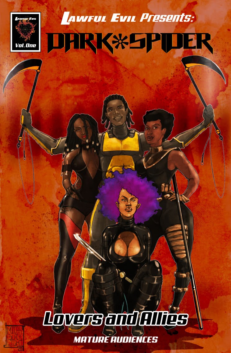 Today I’m reviewing this new comic-book from the erotic indie comics publisher Lawful Evil comics. This is an anthology issue, containing five short stories all starring Jamal Jones aka Dark Spider, the superhero protagonist who starred in Lawful Evil #1. Each story is written by creator Ra’Chaun Rogers and drawn by a different artist, and most of them are heavily focus on FUCKING. This comic is strictly for adults only.