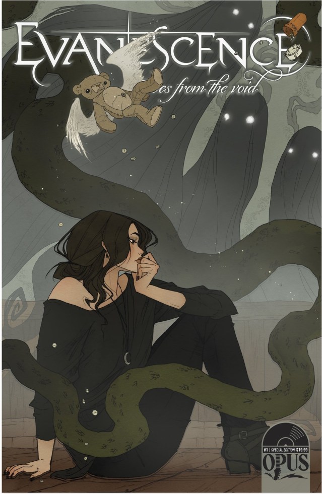 Today I’m reviewing an interesting new project. Earlier this year the rock band EVANESCENCE released their fourth all-original album THE BITTER TRUTH. Along with this album they’re releasing a comic-book anthology series, in which they’ll feature original stories inspired by songs from the album. Pretty cool concept, eh? And when I heard that in this first issue one of the stories would be written by one of my favorite writers, Blake Northcott, of course I had to order it!