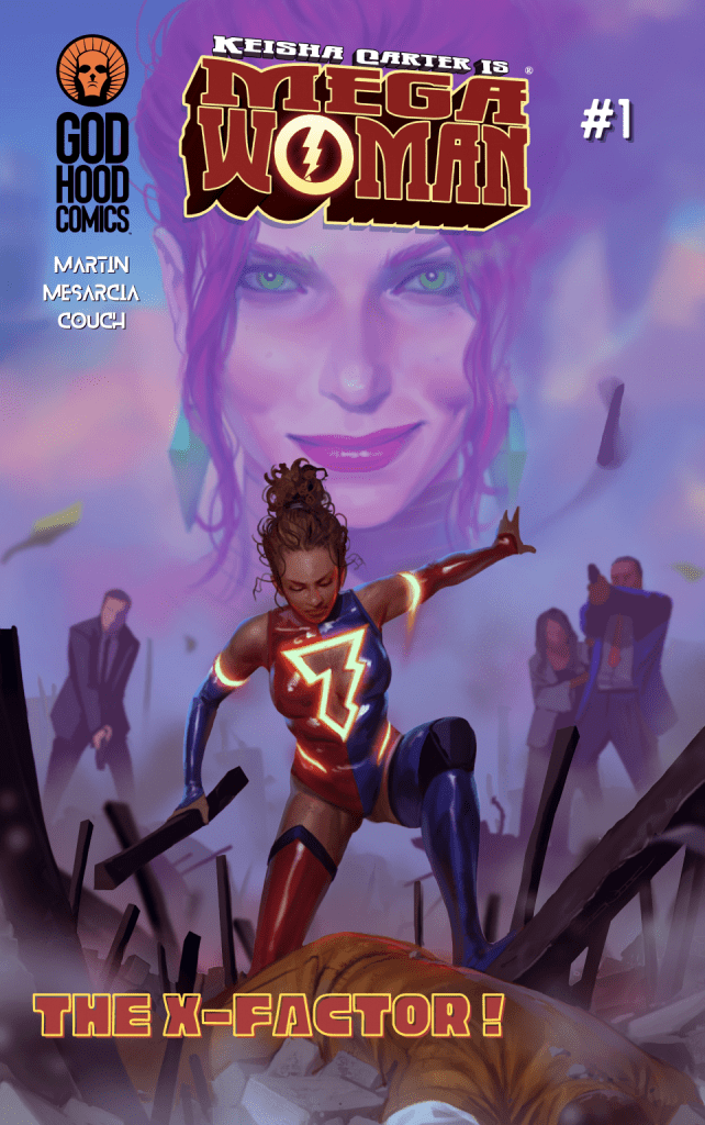 This is the first issue of a brand new Black female superhero named Mega Woman, from the indie publisher Godhood Comics. Written by creator Tyler Martin, and drawn by Cyrus Mesarcia, this issue has 23 jam-packed pages of superhero action and tension-filled drama. The books wastes no time getting started, opening in the middle of a supervillain hostage situation in downtown Atlanta.