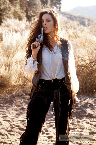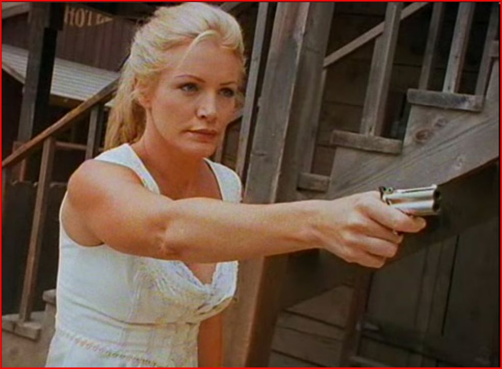 Velvet and Sarah both end up on the same stagecoach, traveling out west. As they pass through a town called Sweetwater in Texas, they get attacked by a gang of outlaws led by Billy Poke (Daniel Murray) and a ruthless woman named Mick, played by the one and only Late Julie Strain.