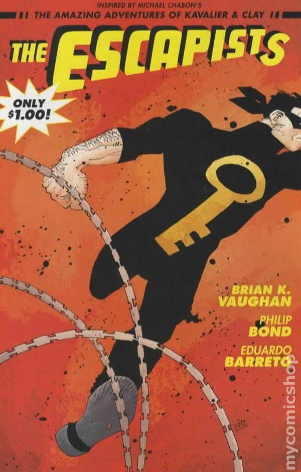This six-issue miniseries, originally published in 2006 as simply “The Escapists,” is inspired by Michael Chabon’s best-selling novel The Amazing Adventures of Kavalier & Clay, which itself was inspired by the real-life story of Jerry Siegel and Joe Shuster, two young Jewish men who together created the comic-book character Superman in the 1930s. In the novel, two young Jewish men named Joe Kavalier and Sam Clay created a comic-book character called The Escapist in the 1930s and the book tells the story of their lives. In this comic, the story of Kavalier and Clay is true, they created The Escapist who was a popular comic-book character, also exploited in other media, that was popular throughout the 1940s, but by the time this series begins in then-present, is long out of print, with the rights being held “some crappy greeting-card company in New Jersey,” and mostly forgotten by the general public.